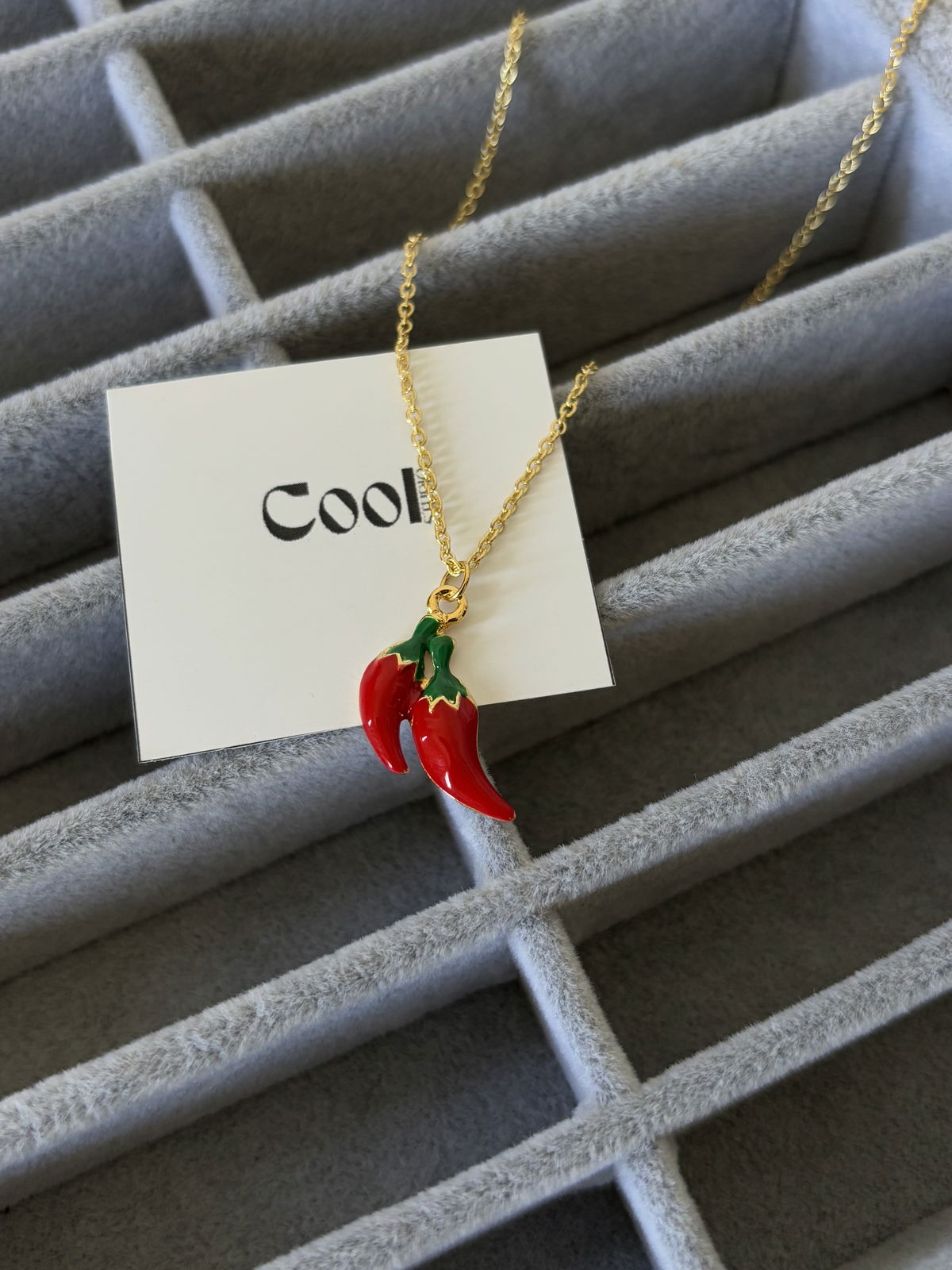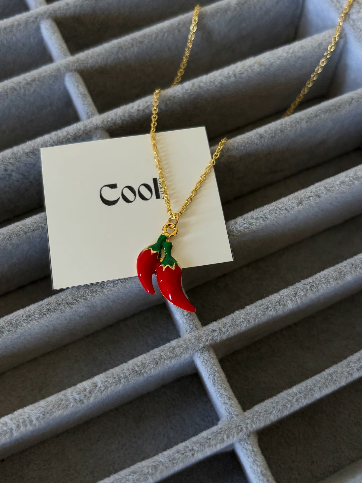 Dije de ajíes de oro laminado y cadena enchapada