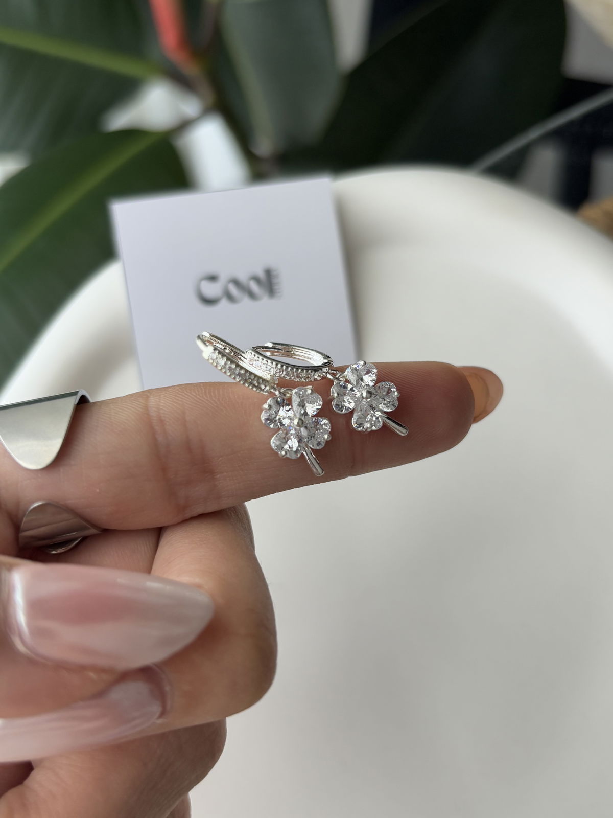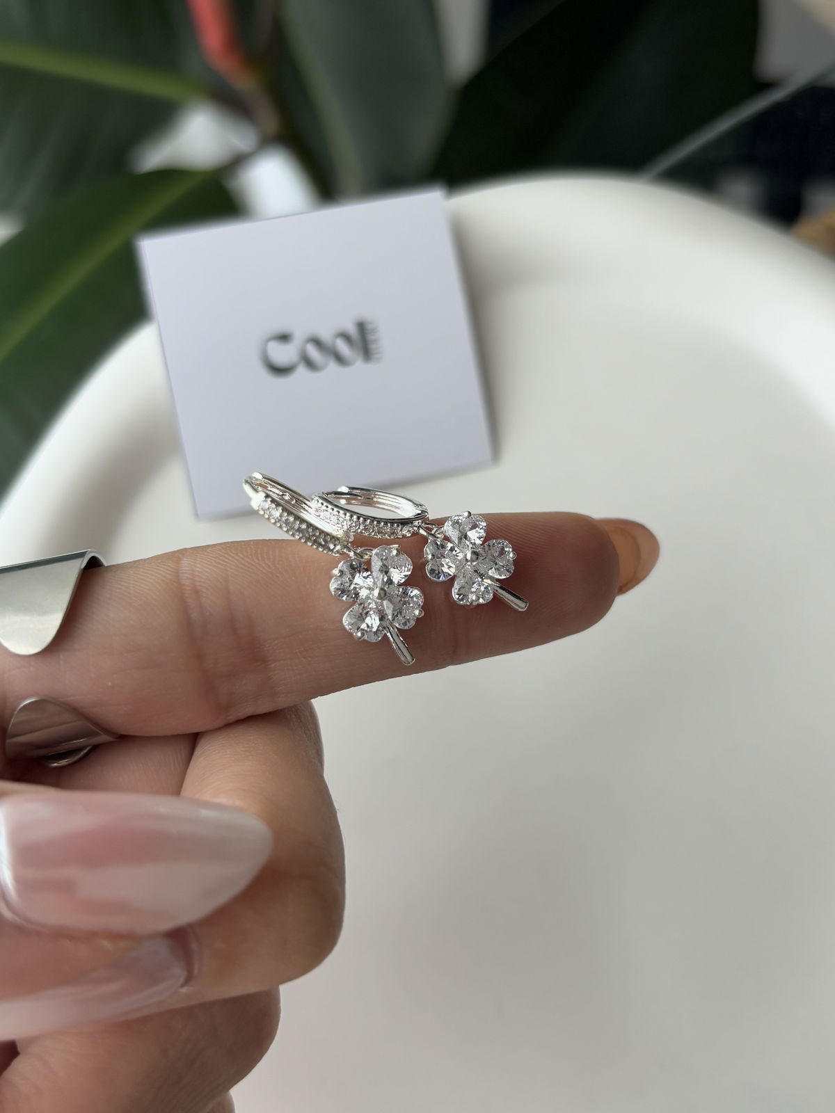 Argollitas de micropave y dije trébol de a.b (12mm)