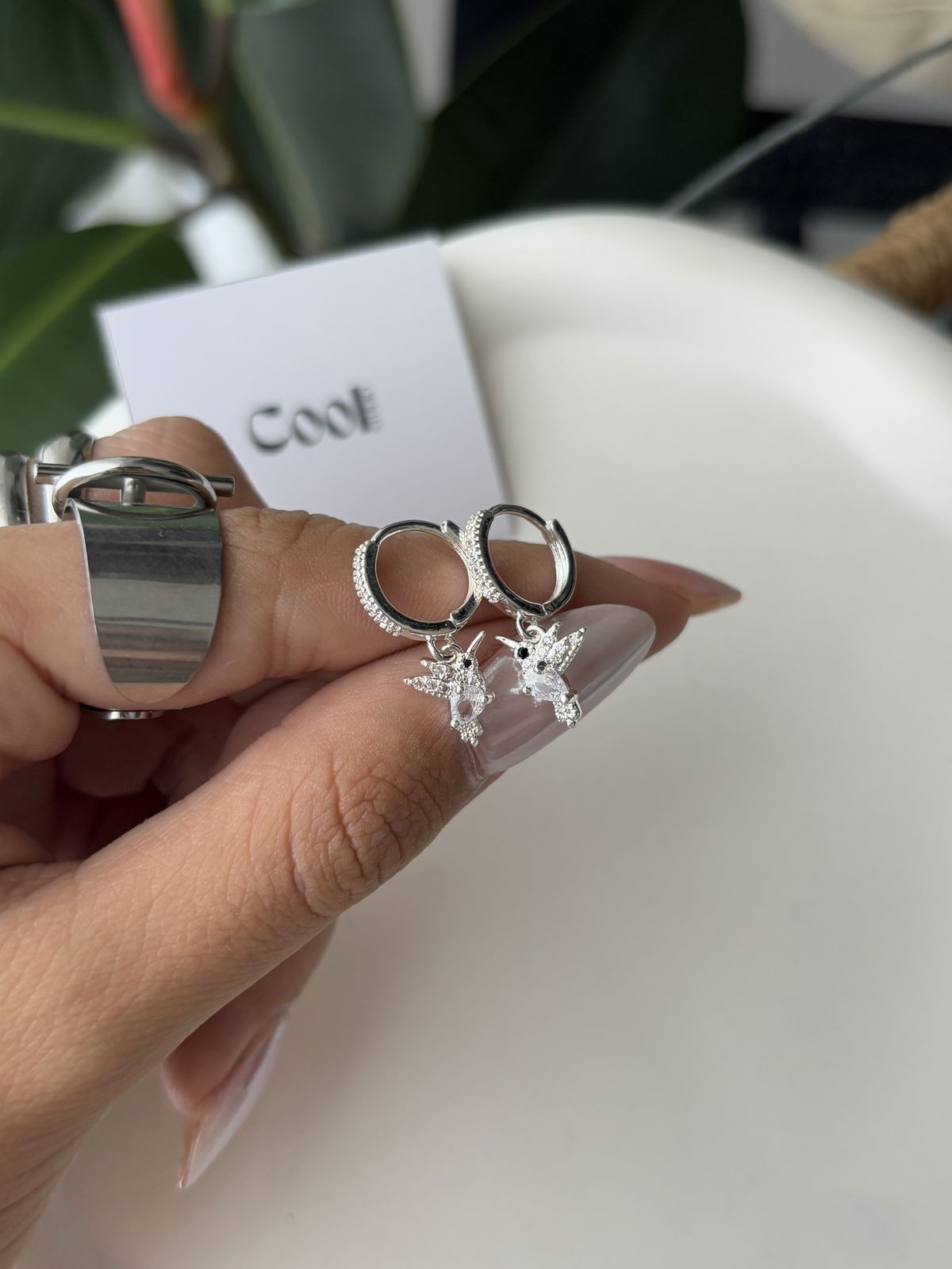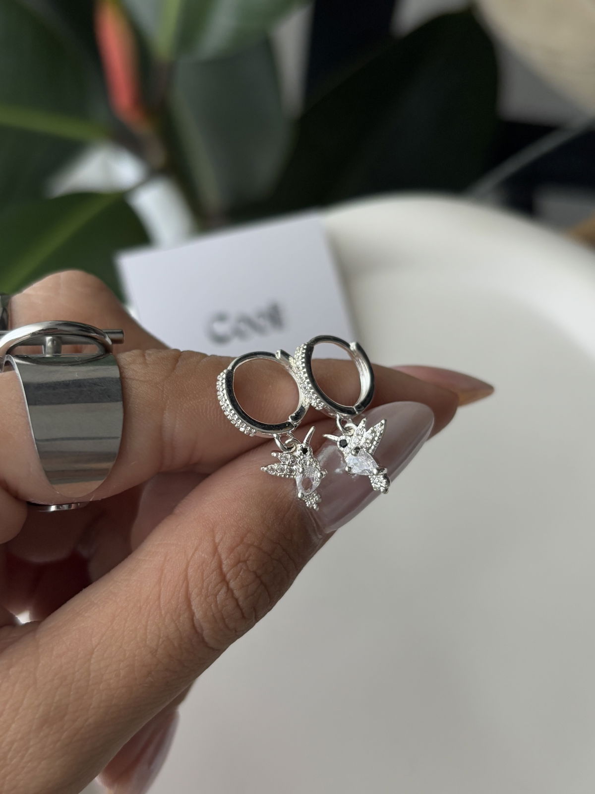 Argollitas de micropave y dije colibrí de a.b (12mm)