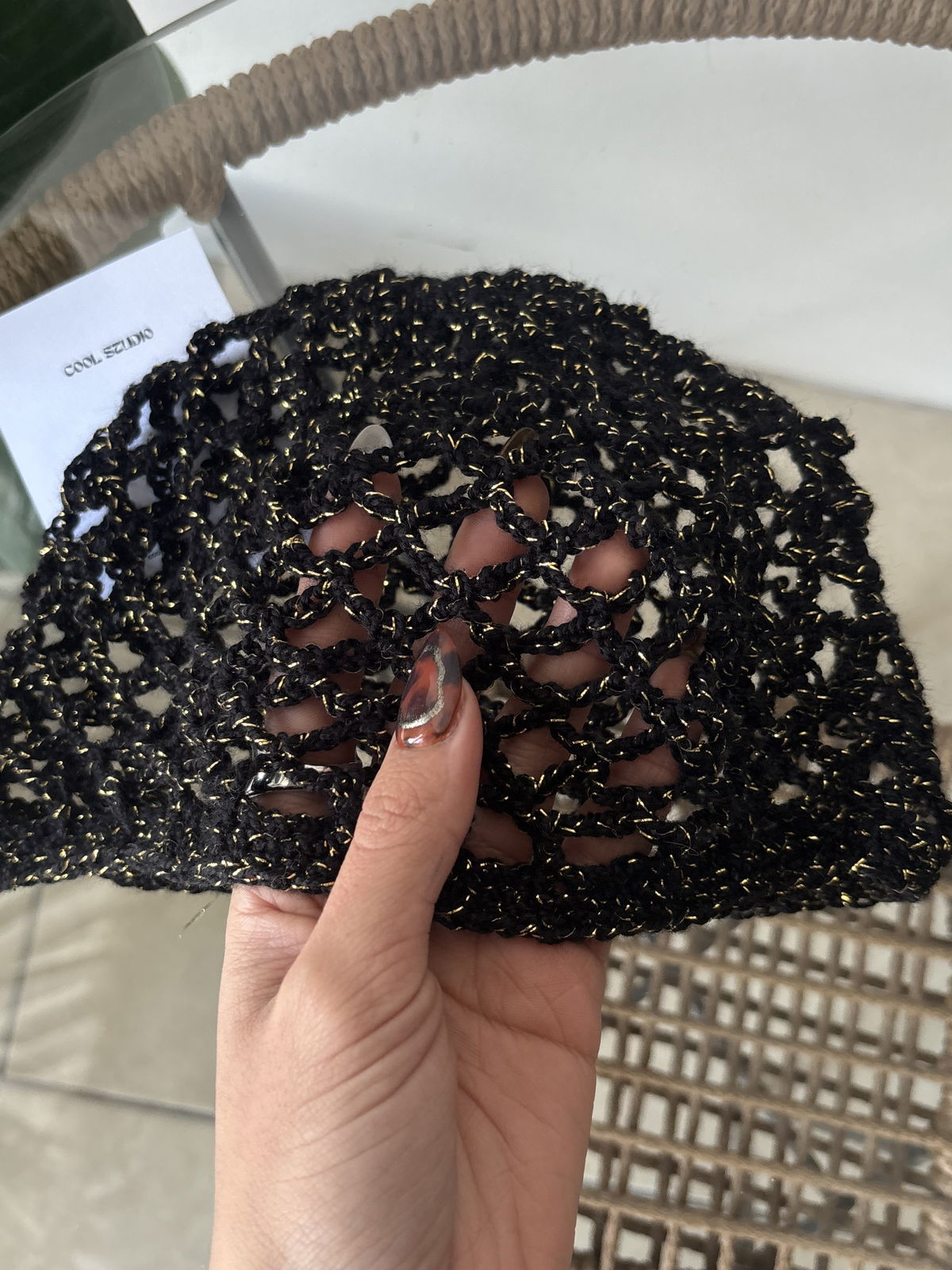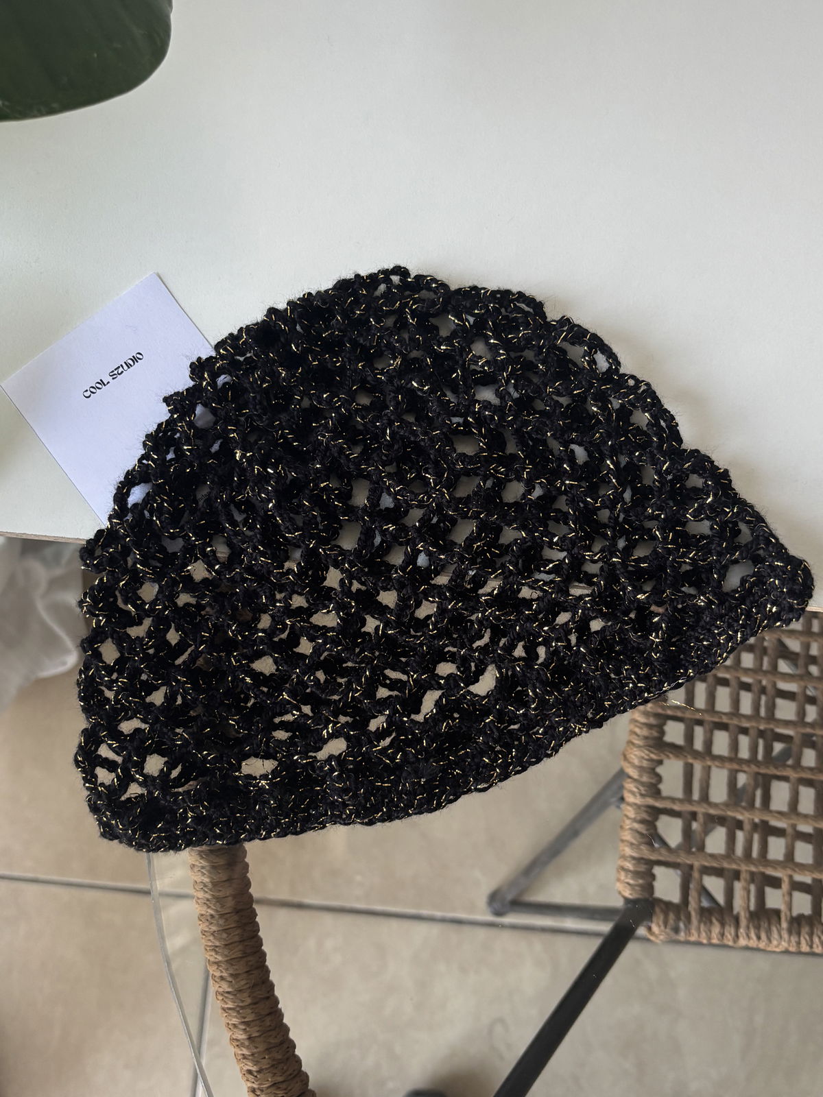 Casquete tejido (con brillos dorados)