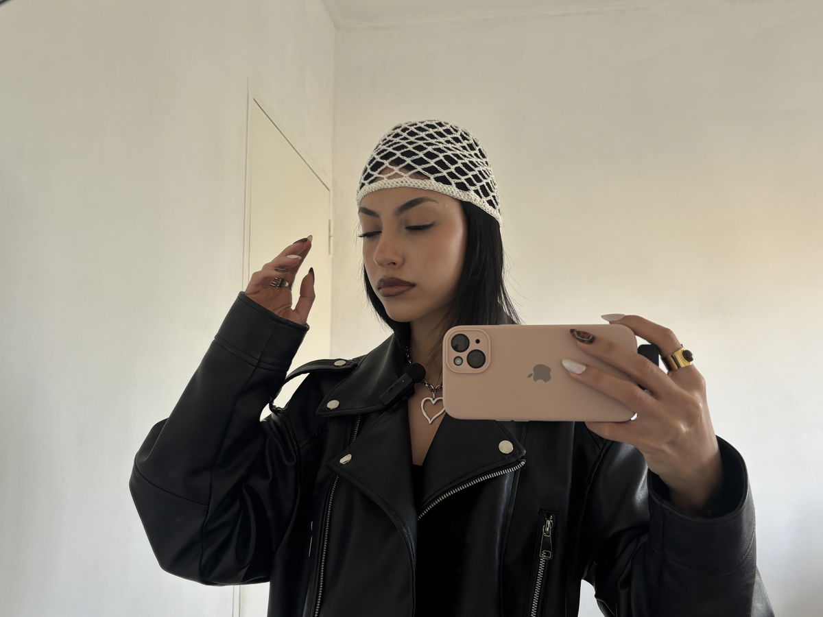 Casquete tejido rombos (crema)