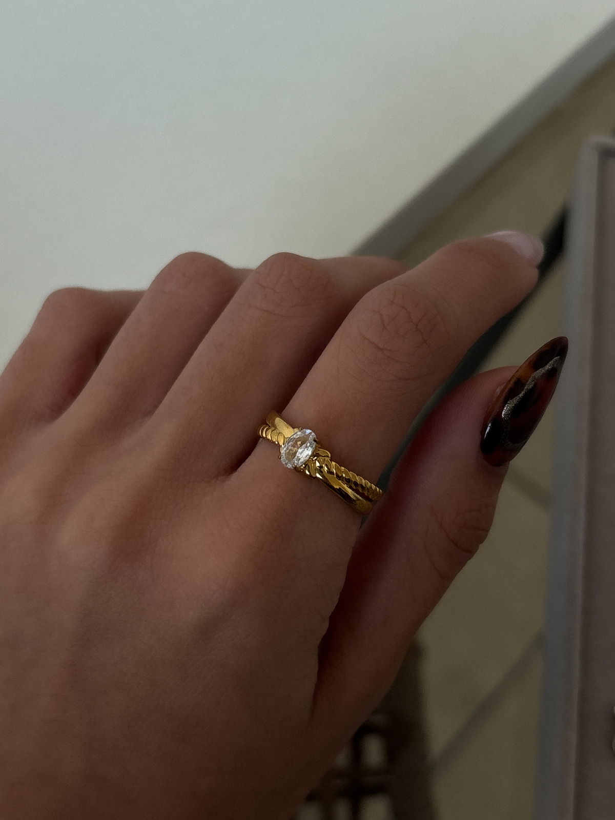Anillo ckunky de acero quirúrgico dorado.