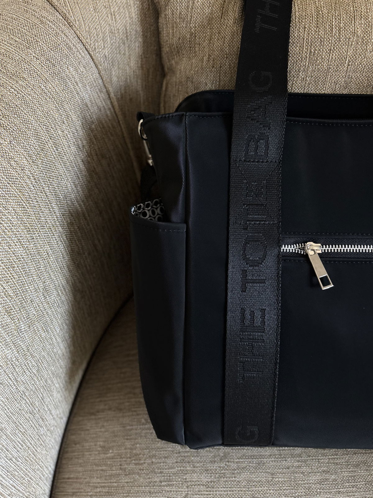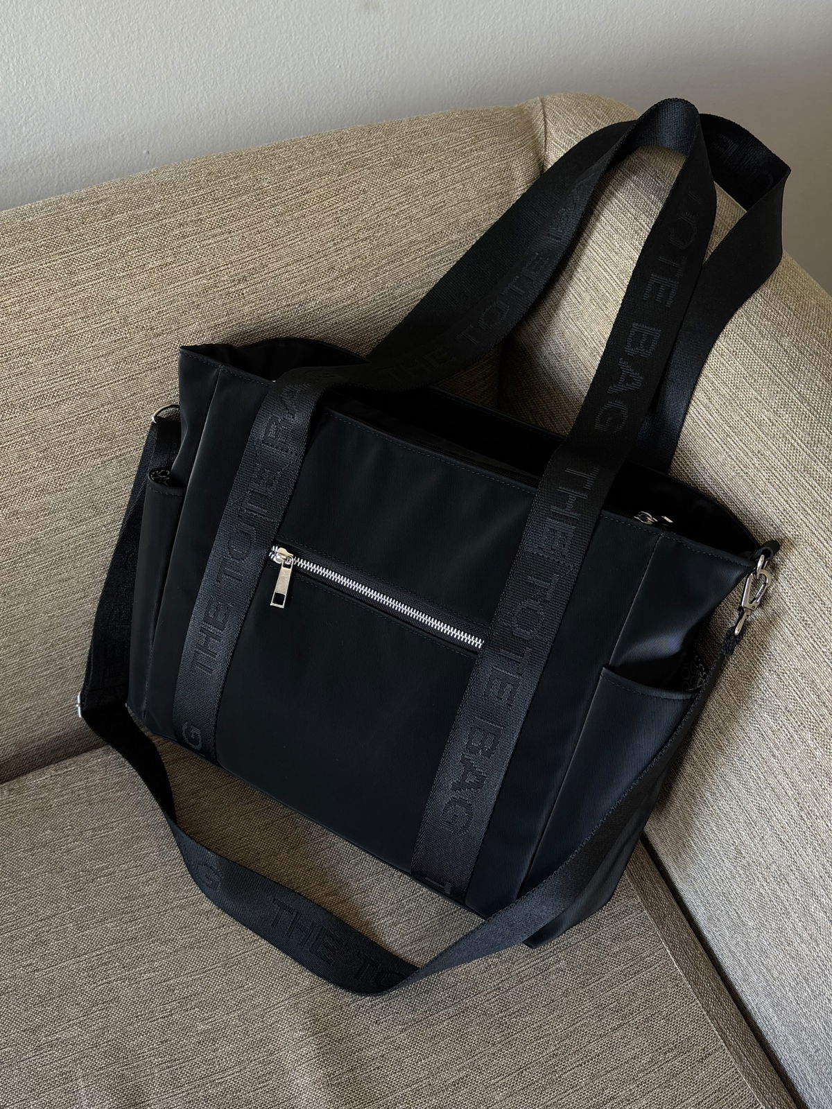 Tiras de las asas de cinta sublimada con detalle de letras.